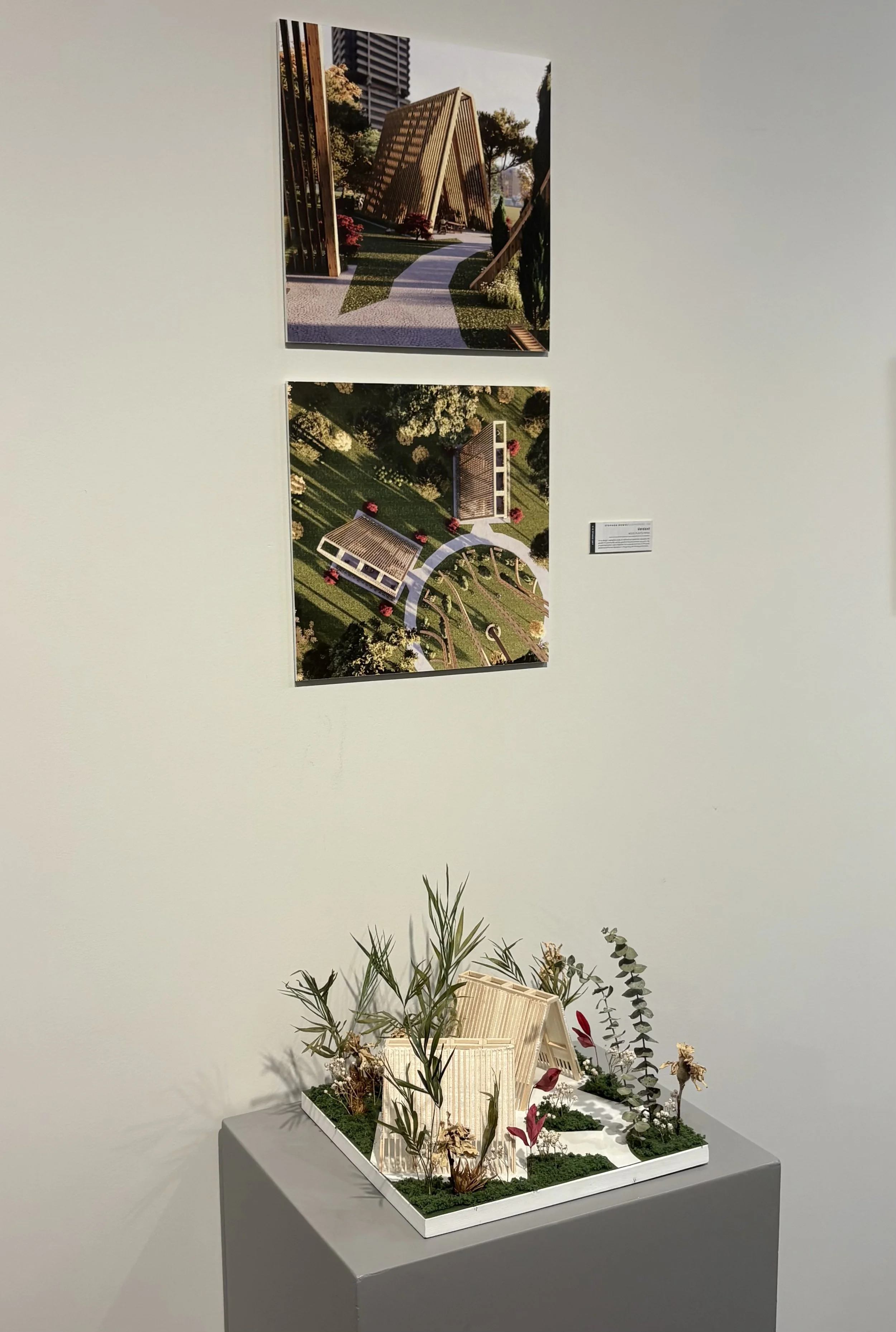 Completed for a college art competition, the project earned an honorable mention and features two outdoor pavilions and a circular walking path around an abstract tree art installation. The design reflects both environmental flourishing and the personal and professional growth that the pavilions foster for visitors.